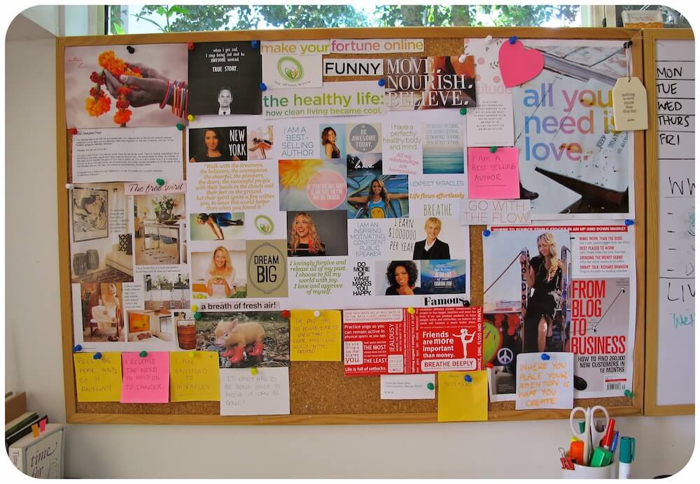 5. Vision Board – A big white board or cork board with pictures, words and everything related to your end goal! These work especially well when you have the steps on the board that you have to do to achieve your goal and you can mark them off!